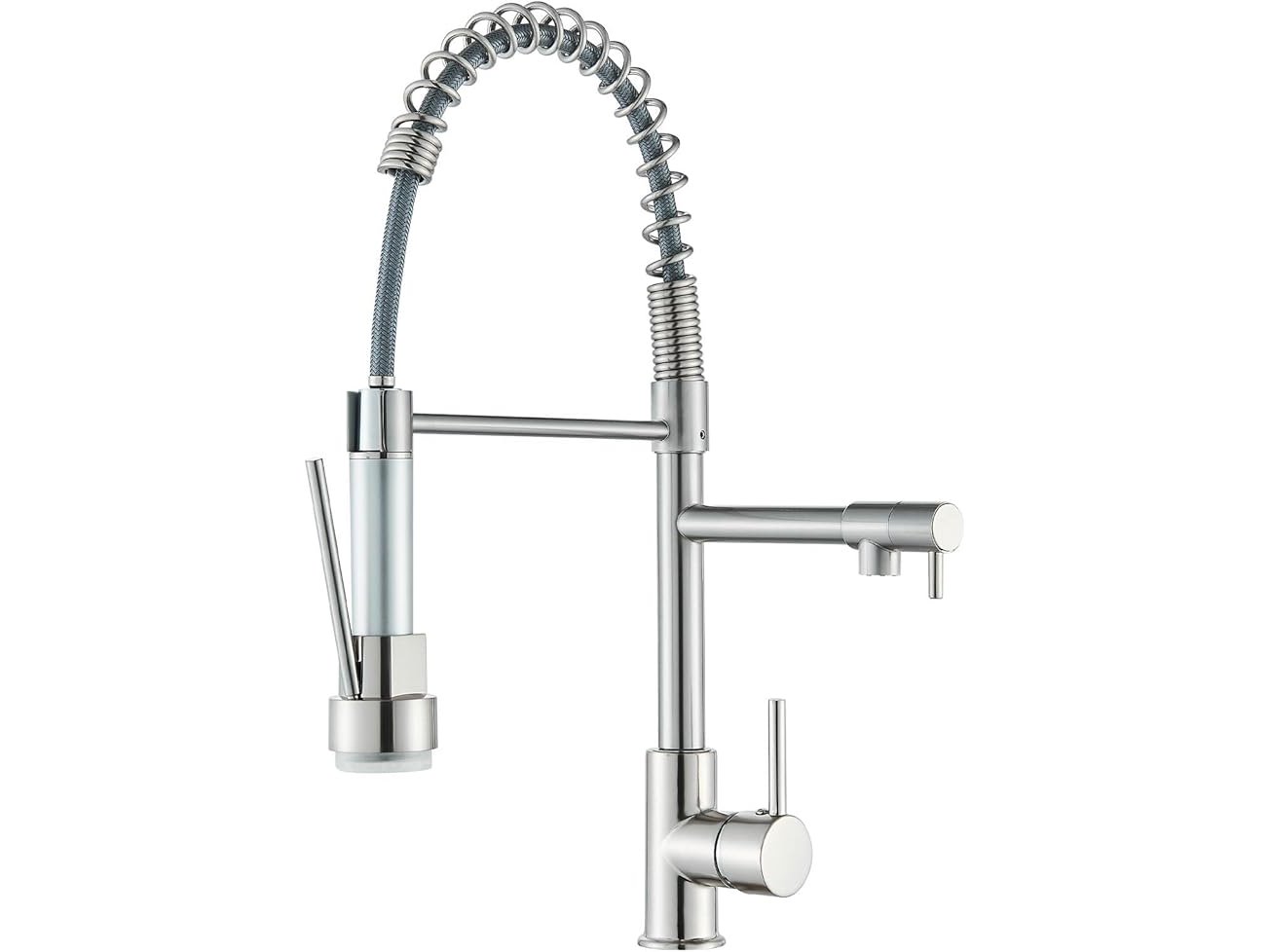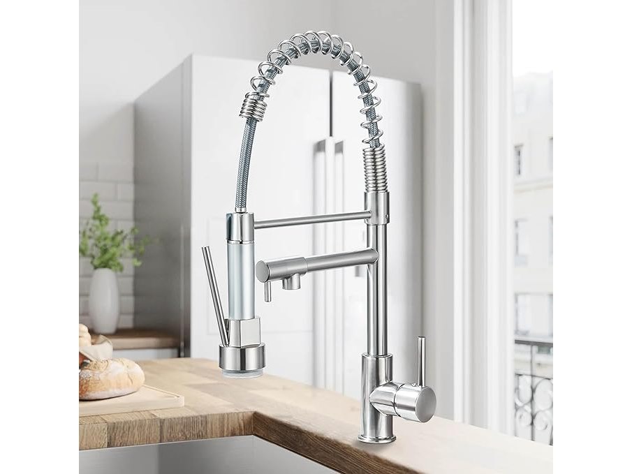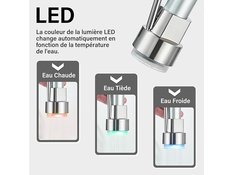 Ongebruikt, volledig, ok, Saeuwtowy 3-kleuren LED-keukenkraan met flexibele en intrekbare 360° draaibare douchekop en sproeier met dubbele functie, duurzame messing afwerking en geborsteld oppervlak,B07P9QWML5