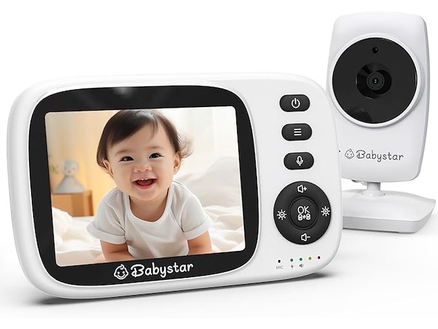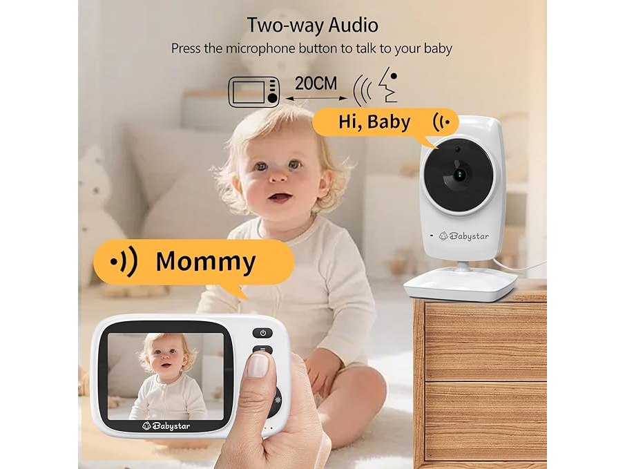 Ongebruikt, getest en werkend, compleet, Babystar babyfoon met camera, 3,2 inch scherm, babyfoon zonder wifi, tweewegsaudio, 2100 mAh batterij, 4 slaapliedjes, VOX-modus, nachtzicht, temperatuursensor, B0FPCZDDS7