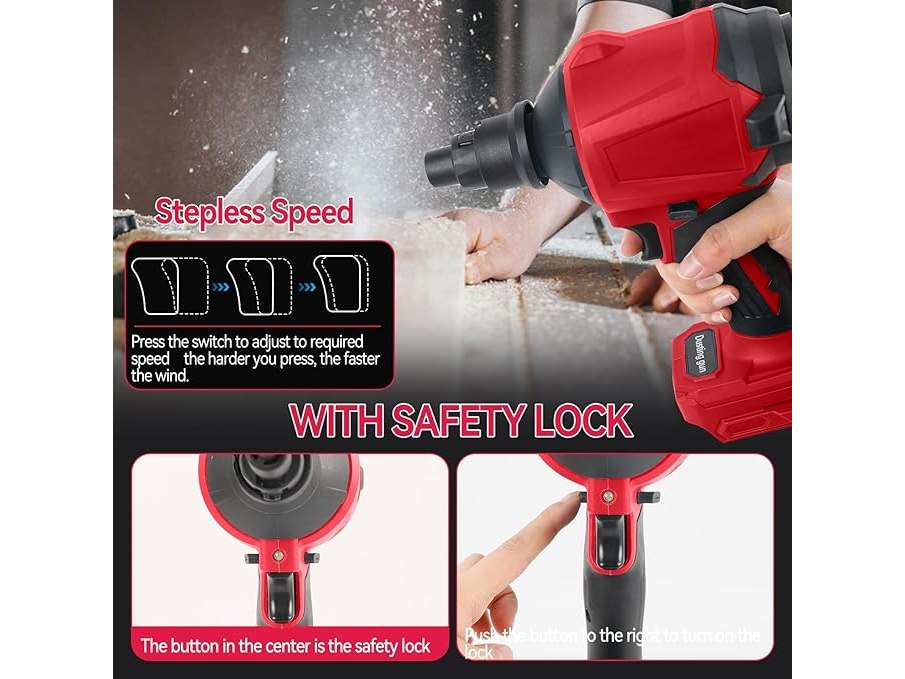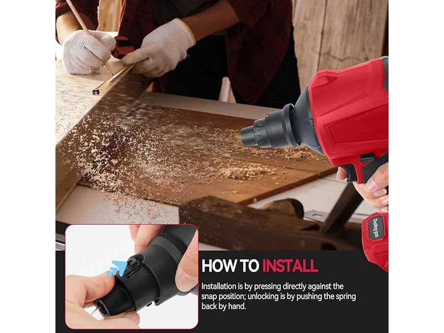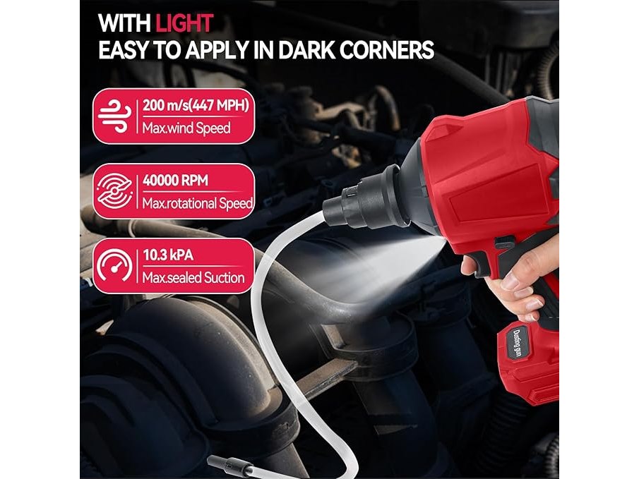 Gebruikssporen, werkt, Draadloze stofblazer voor Milwaukee, 18V accu, 1000W handzame persluchtstofblazer met traploze snelheidsregeling, LED-verlichting en 8 mondstukken, 40.000 tpm, voor garages, werkplaatsen, zagen, slijpmachines, kamers en huisreiniging, B0F4KNQ8SS