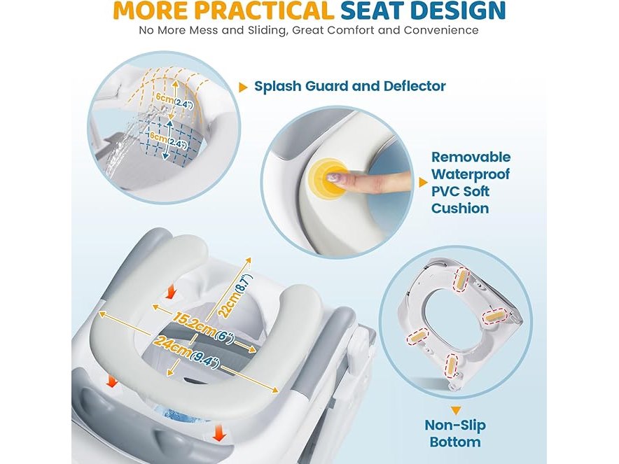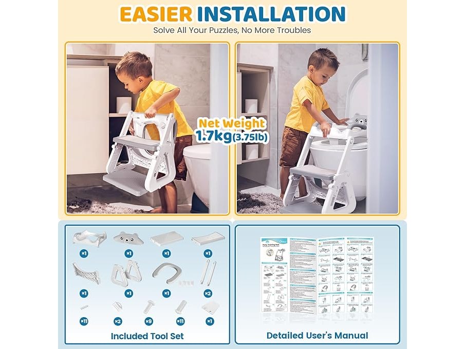 Ongebruikt, ok, compleet, Orzbow Verstelbare Kindertoiletbril met Trapje, Stabiele Toiletbril voor Kinderen met Opstapje, Verlengd Pedaal & Spatbescherming en Waterdicht PVC Kussen, Antislip & Lichtgewicht, Grijs, B0D5CCQ16Z