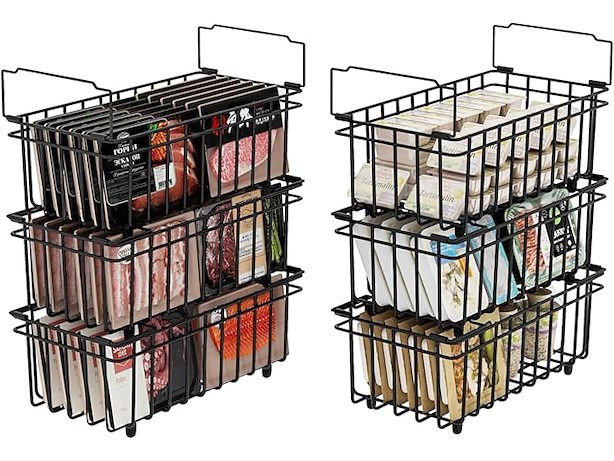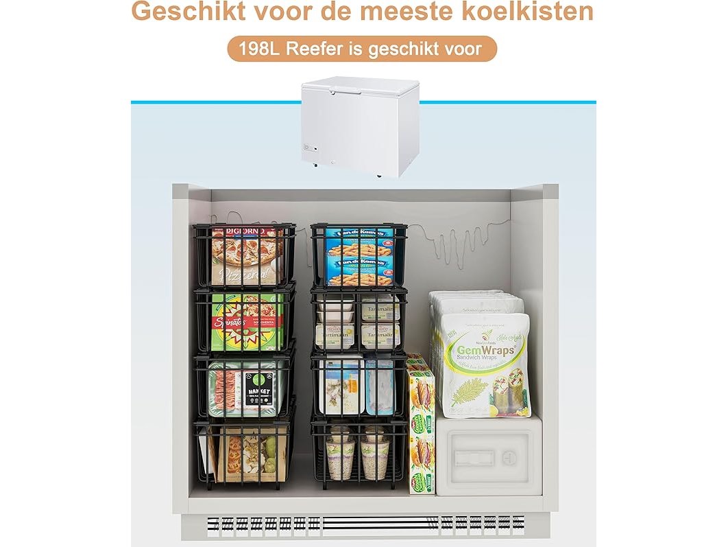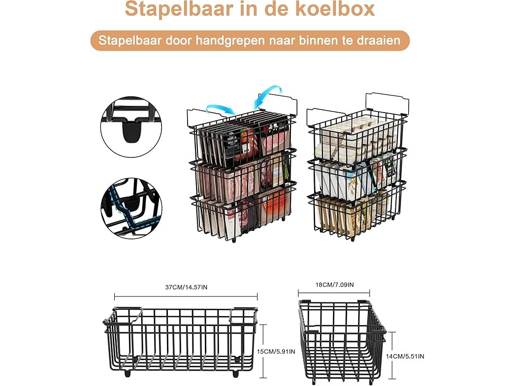 Ongebruikt, ok, UMDONX 6-delige diepvriesmandenset zwart - Stapelbare diepvriesmanden met handvat, gemakkelijke toegang, voor een vriezer van 198 liter, voor het organiseren van diepvriesproducten (37x18x15cm), B0DK9431MW