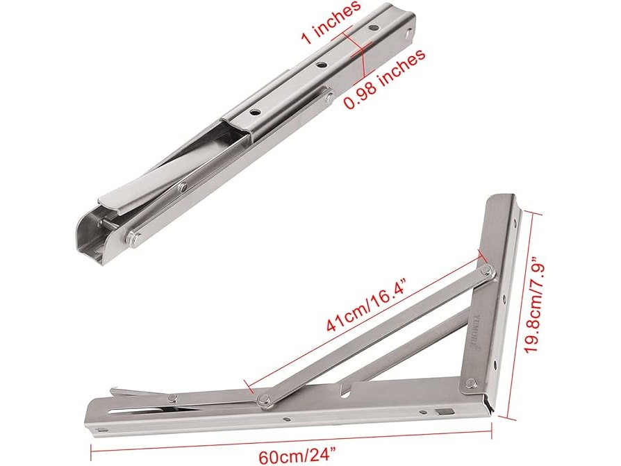 Ongebruikt, ok, compleet, YUMORE Opvouwbare plankdragers 600 mm, roestvrijstalen opvouwbare beugel, zware plankdragers, wandmontage, max. 150 kg, L-vormige opvouwbare plankdragers voor stoelen en planken, 2 stuks, B098Q5PDZS
