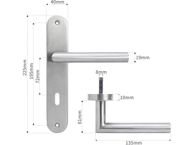 Ongebruikt, ok, geen doos, AwmnSrman Deurgrepen, binnendeuren, deurbeslag, deurbeslag, deurgarnituur, kamerdeurgarnituur, 72MM-BB-bontebaard, set van 4, modern roestvrij staal, 8 deurklinken en 8 lange platen, B0C7W5KR68