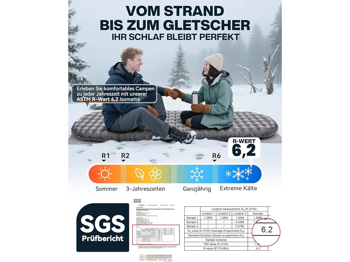 Ongebruikt, ok, HIKENTURE 6.2 R-waarde ultralichte opblaasbare slaapmat, 8 cm dik, klein formaat, geschikt voor alle seizoenen, outdoor, wandelen, B0CRV2X3RZ