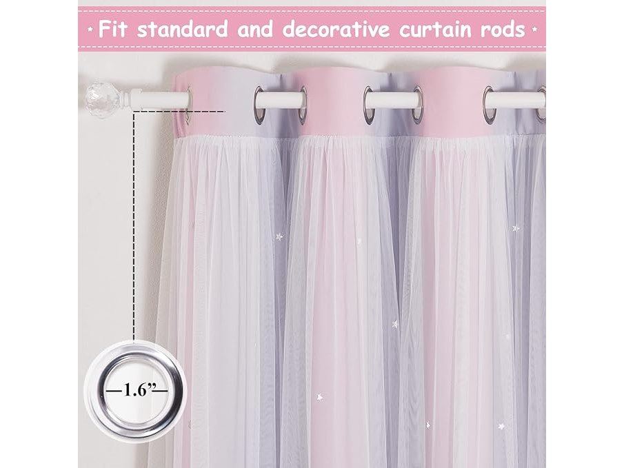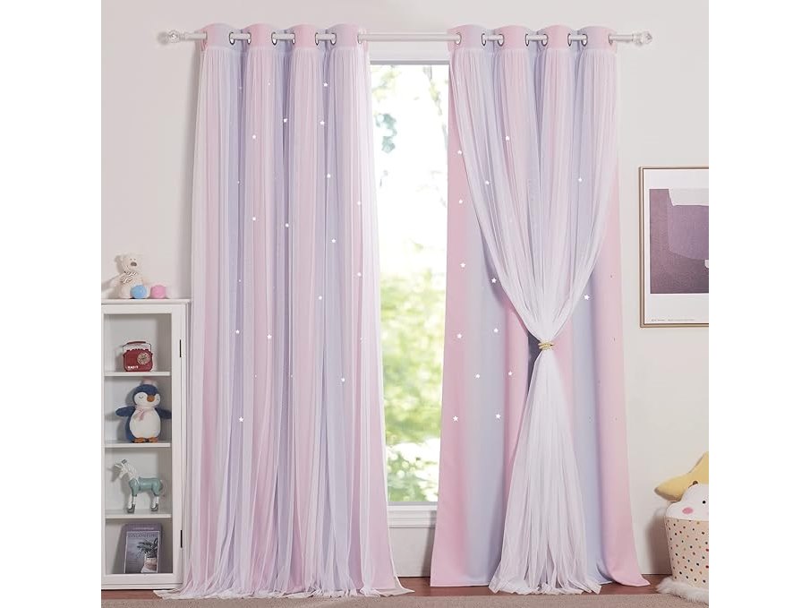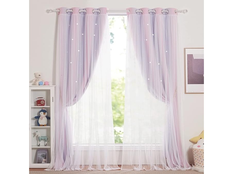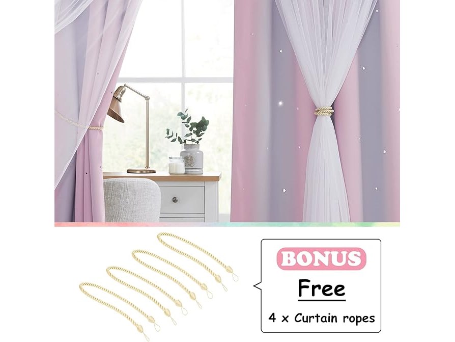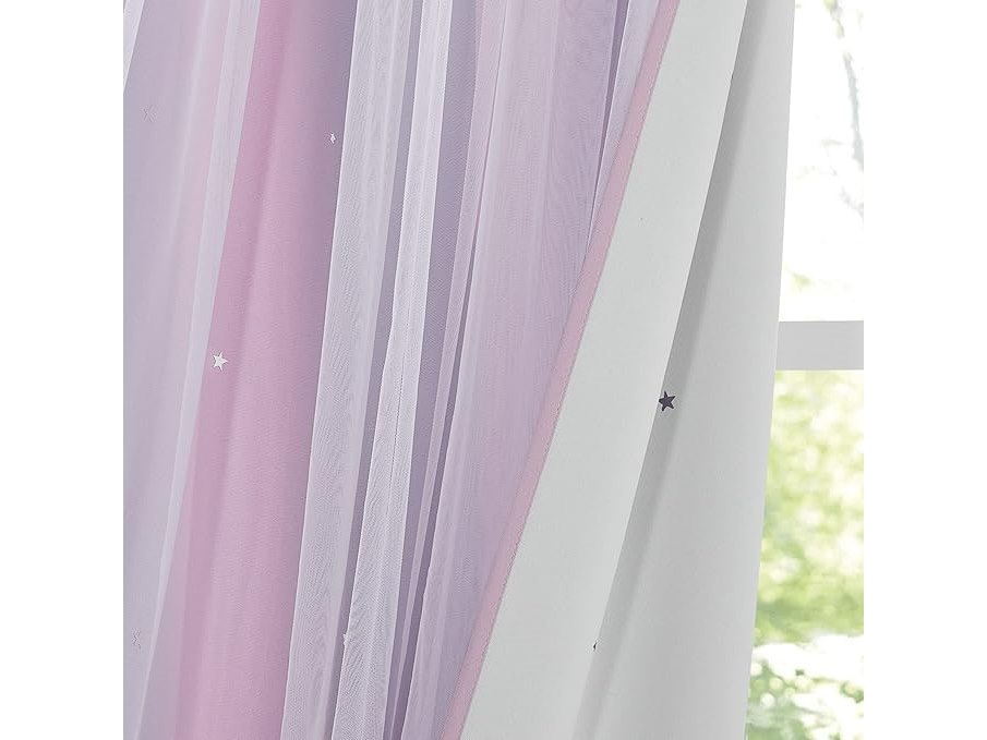 Minieme gebruikssporen, ok, NICETOWN Gordijnen voor meisjeskamer - Verduisterende gordijnen met witte sterrenprint en ringen, L 132 x H 240 cm, roze + paars, 2 stuks, B0BS978BJ3