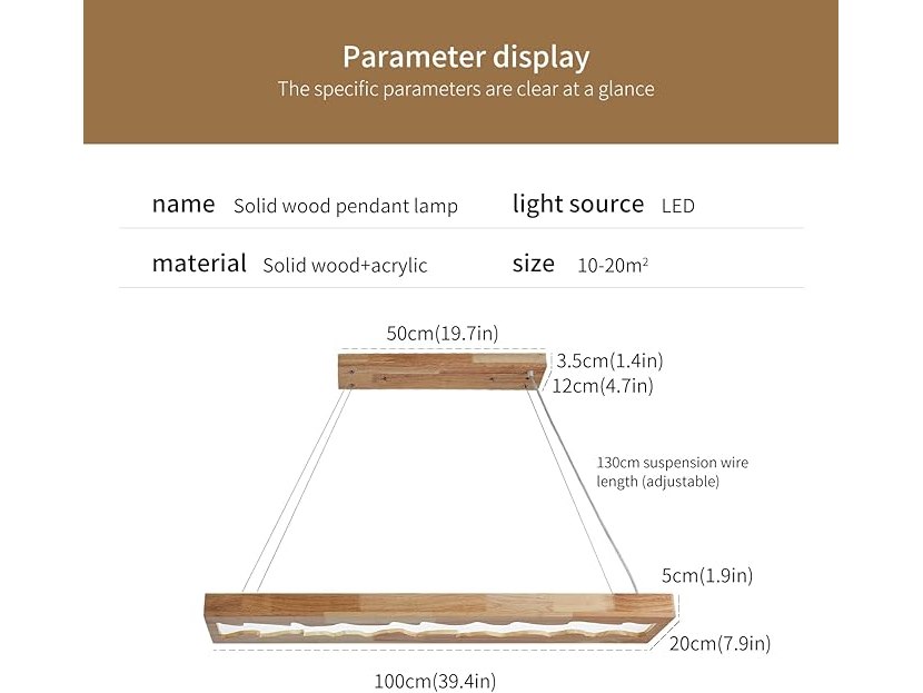 Minieme gebruikssporen, getest, compleet, LED houten hanglamp, dimbare rustieke houten hanglamp voor eettafel, in hoogte verstelbare plafondlamp, 40W, 100cm, B0BN7Y77D8