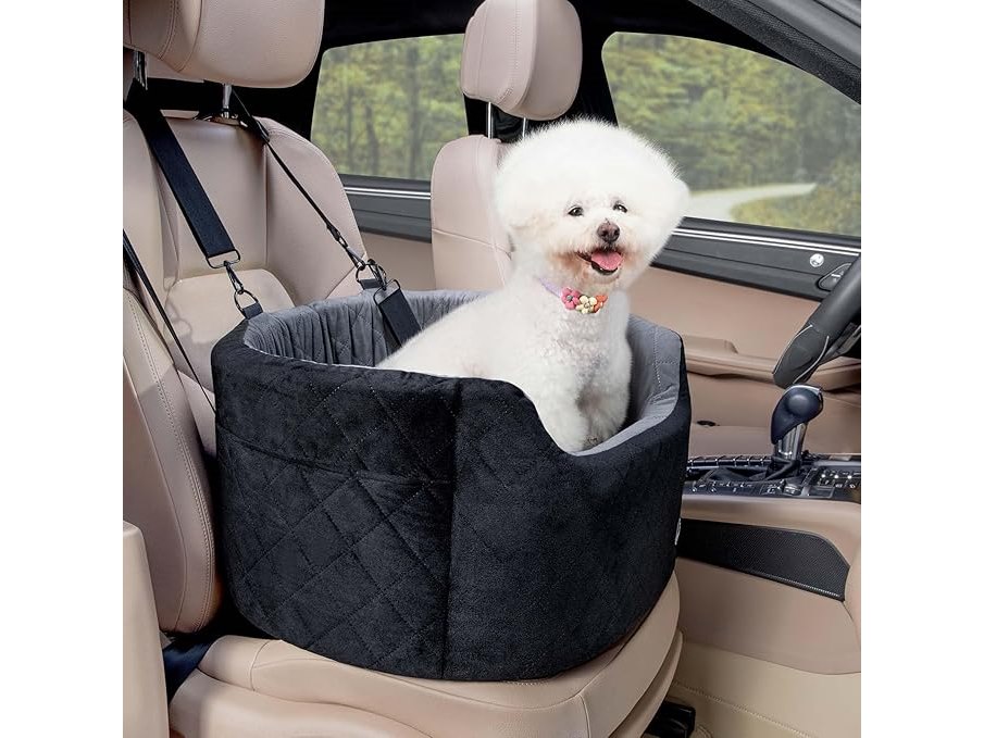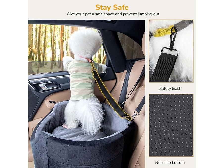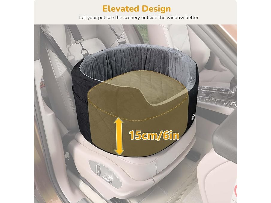 Ongebruikt, ok, Pecute hondenautostoel voor kleine en middelgrote honden, zitverhoger, autostoel met veiligheidsgordel, zacht kussen, 6 cm dik, uitneembaar en wasbaar hondenbed met opbergvakken, tot 13,6 kg, B0DK3QXB9K