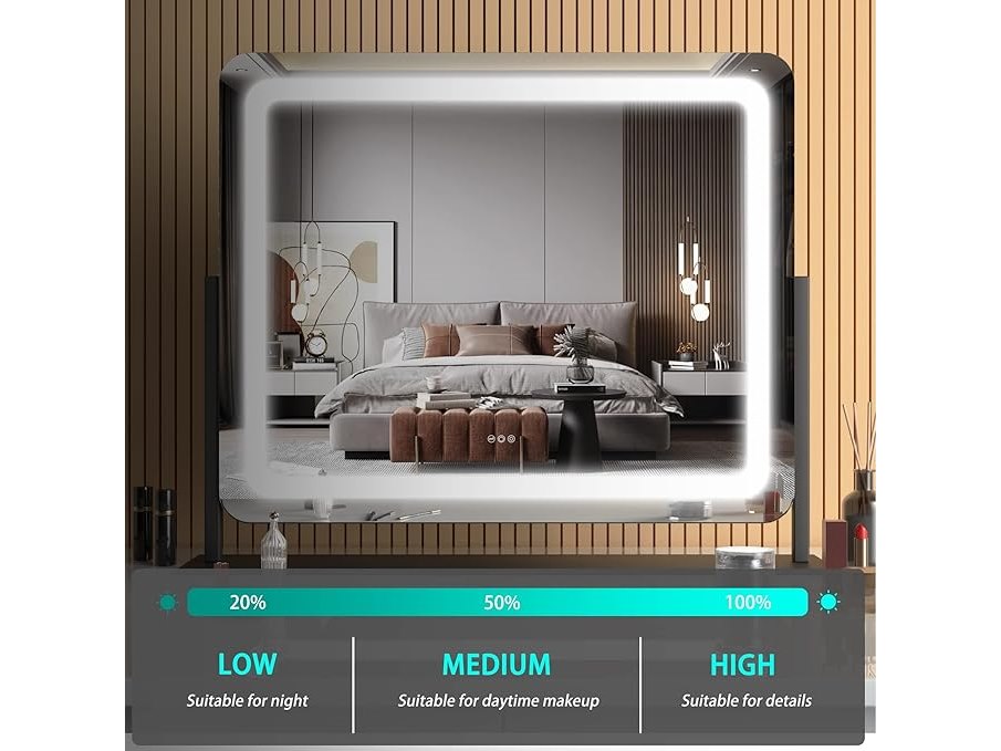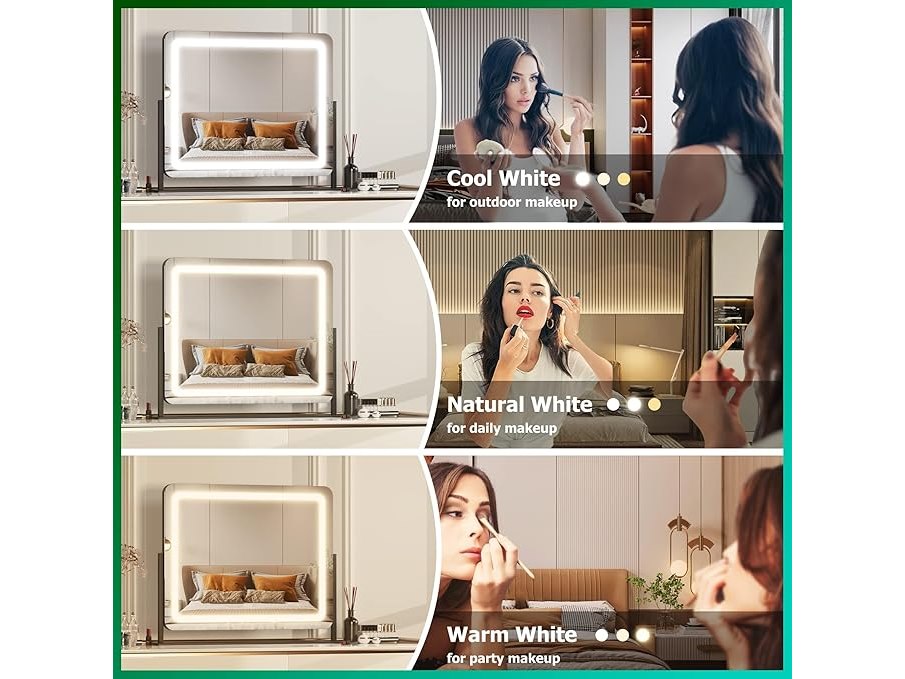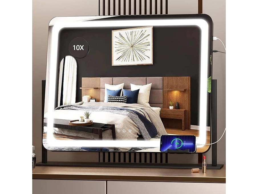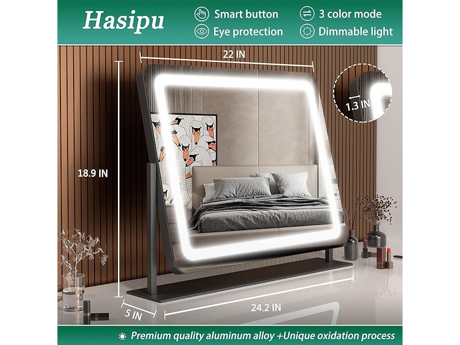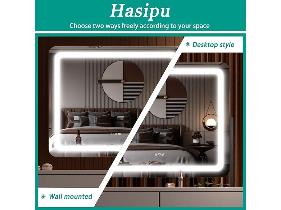 Ongebruikt, getest en werkend, Hasipu make-upspiegel met verlichting, LED make-upspiegel, 61 x 47 cm, verlichte spiegel met 10-voudige vergroting en USB-oplaadpoort, telefoonhouder, smart touch, 3 kleuren, dimbaar, B0B4WFSQXM