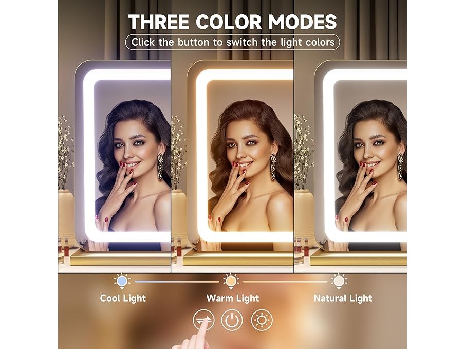 Lichte gebruikssporen, getest en werkend, Hasipu Make-upspiegel met verlichting, 58 x 48 cm, led-make-upspiegel, oplichtspiegel met 10x vergroting en USB, telefoonhouder, Smart Touch 3 dimbare kleuren, 360° rotatie (zwart), B0B4WCWTPB