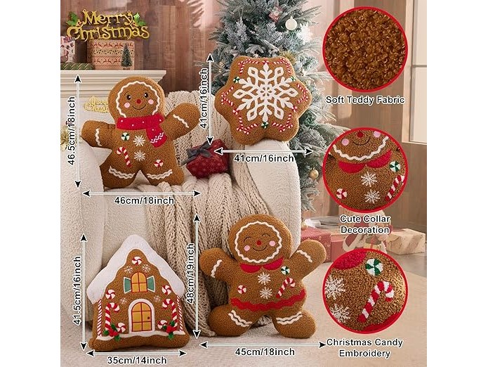 Ongeopend, in seal, Lanpn Peperkoek Kerstkussen set van 4, Kerstdecoratie, winter sierkussen Peperkoek kussen decoratief kussen voor Geschenk Thuis Feest Kantoor Woonkamer Slaapkamer Bank Bed, B0FMKDM9QY