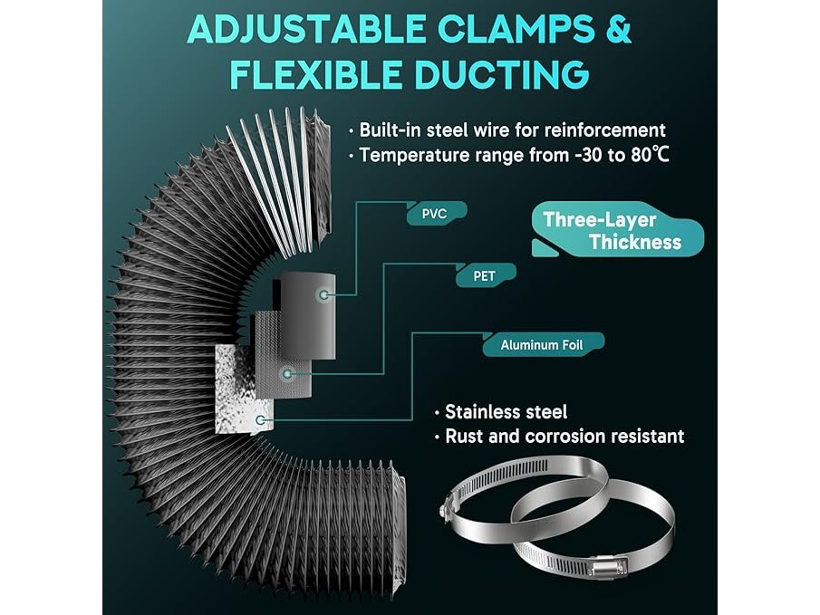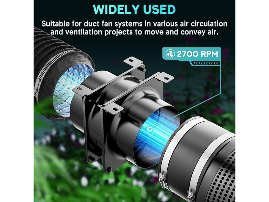 Minieme gebruikssporen, getest en werkend, HG Power Axiale buisventilator 100 mm Geluidsarm 199 m³/u Kanaalventilator Energiebesparende badkamerventilator Buisventilator met twee klemmen en 2 m slang voor kweektent, keuken, badkamer, B07SHCMCK8