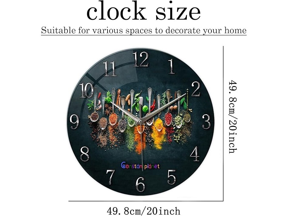 Ongeopend, ok, Constantplanet Grote wandklok voor de woonkamer, 50 cm glazen wandklok, werkt op batterijen, keukenklok, wanddecoratie, B0DRXVZ8HG