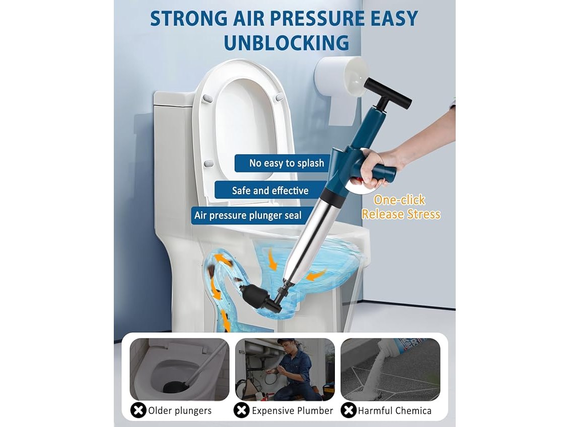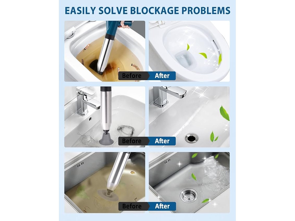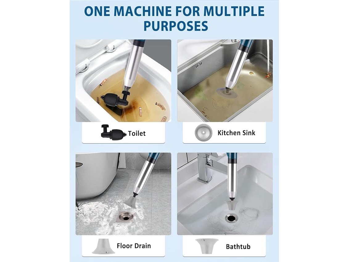 Ongebruikt, ok, compleet, YUCHENGTECH Toiletontstopper, een krachtige toiletstofzuiger met 2 afvoerhaarreinigers en 4 verwisselbare opzetstukken, een hogedrukontstopper voor het ontstoppen van badkuipen, afvoeren en meer, B09YGYCFY7