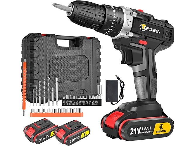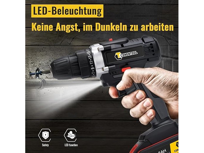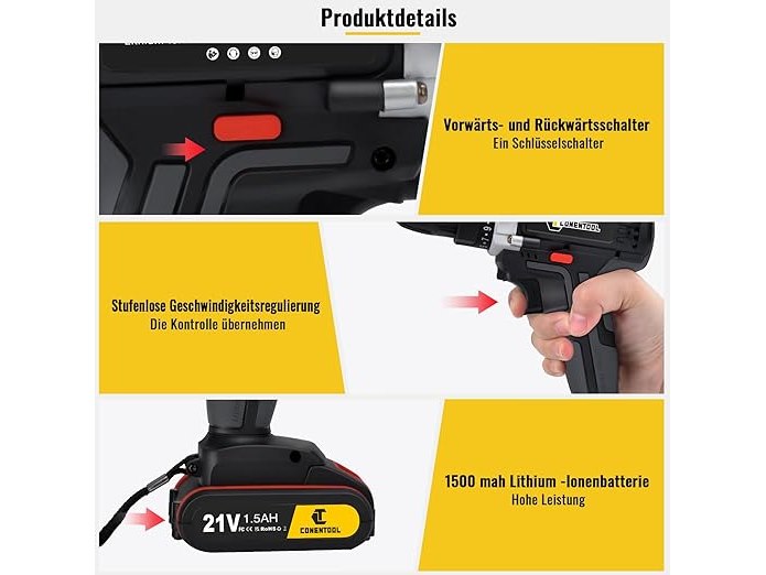 Minieme gebruikssporen, werkt, !!!1x accu !!!, 21 V accuschroefboormachine met 2 x 1500 mAh batterijen, 45 Nm, snel opladen, accuboormachine, 2 snelheden, led-koffer, B09BD2G1H7