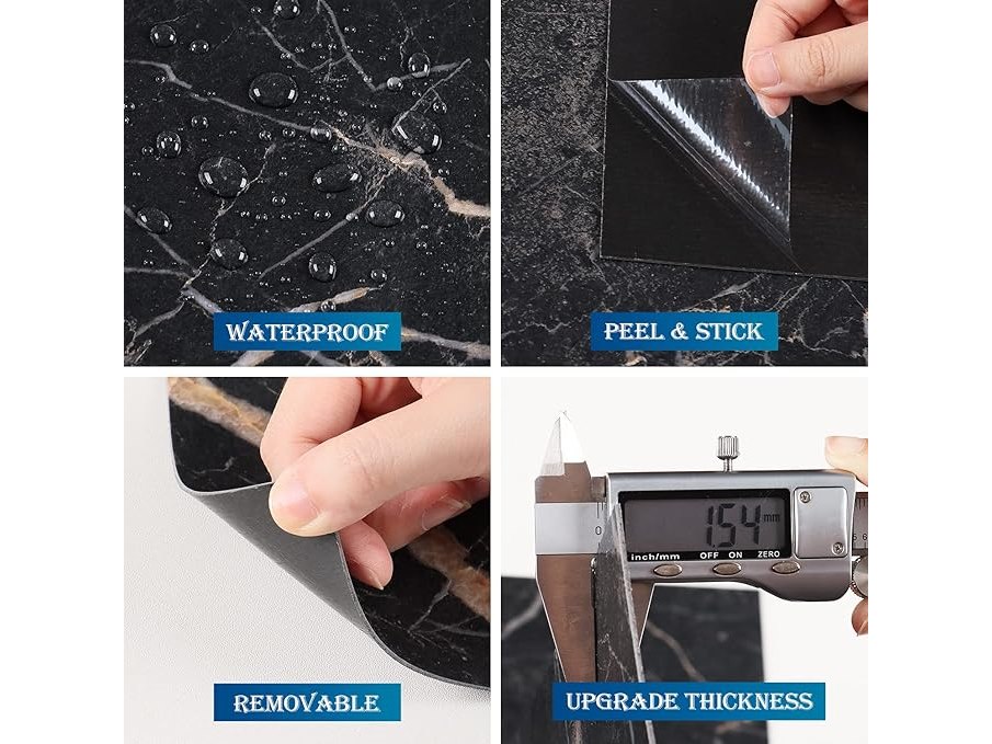 Ongeopend, ok, 5 x FunStick Marmeren Schil- en Stokvloertegels 15 Pak Zwart 12x12 Inch Waterdichte Zelfklevende Vinyl Tegels voor Badkamer, Keuken, Slaapkamer, Boerderij, Garage, B098X9Y1NX
