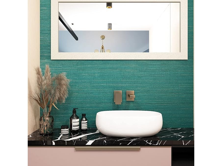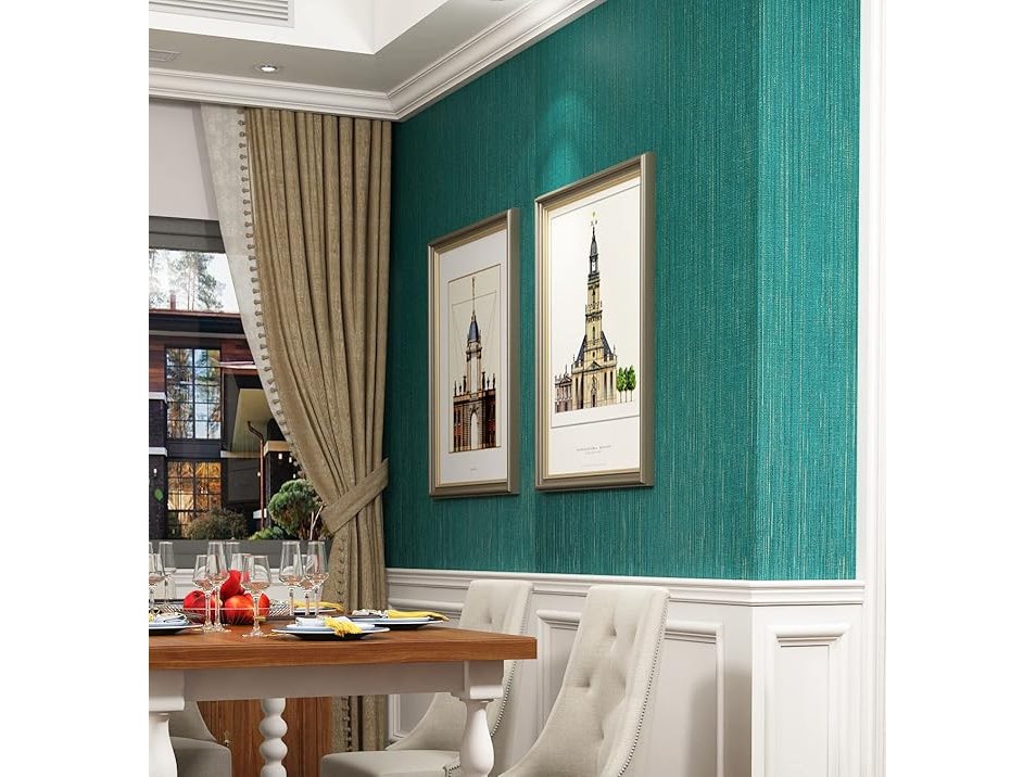 Ongeopend, in seal, 5 x FunStick Zelfklevend Behang (40 cm x 6 m) - Linnen Textuur, Groen Goud, Modern Helder Wasbaar Patroon - Voor Woonkamer, Slaapkamer, Meubilair - Petrol Stof Film, B09JSMSZPY