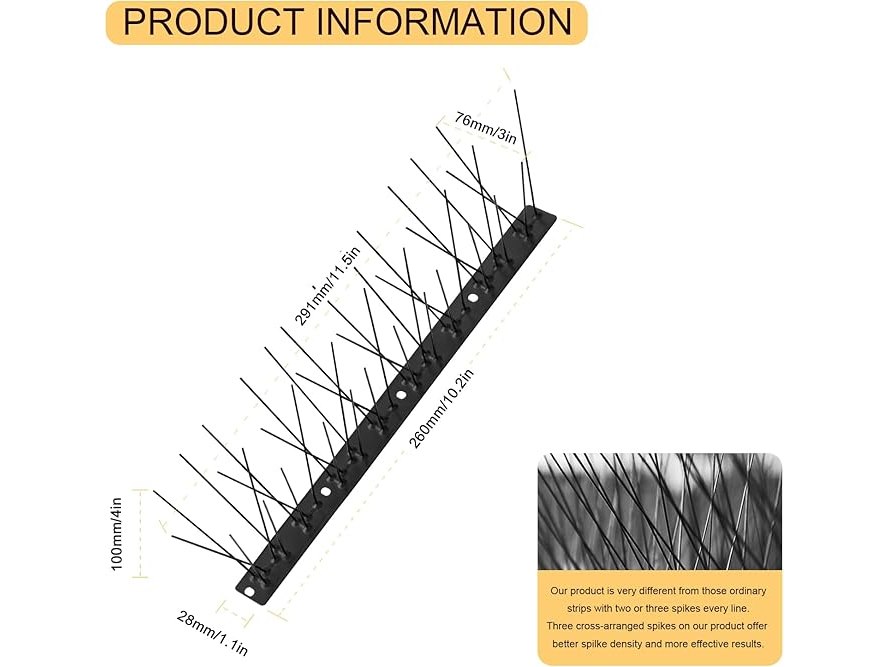 Ongebruikt, volledig, ok, OFFO Vogel spikes voorgemonteerd voor daken en ramen, duurzame duivenspikes voor het afschrikken van kraaien, meeuwen en kleine vogels, vogelafschrikmiddel spikes set cover 5,2 m, mat zwart, B0CP2F3YCW