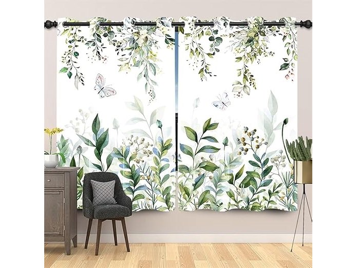 Ongeopend, ok, Verduisteringsgordijnen, eucalyptus, verduisteringsgordijnen, bladerenpatroon, blauw, groen, roze, bloem, thermisch gordijn, isolerend, hittebescherming, 140 x 245 cm, B0C4T5C8P2