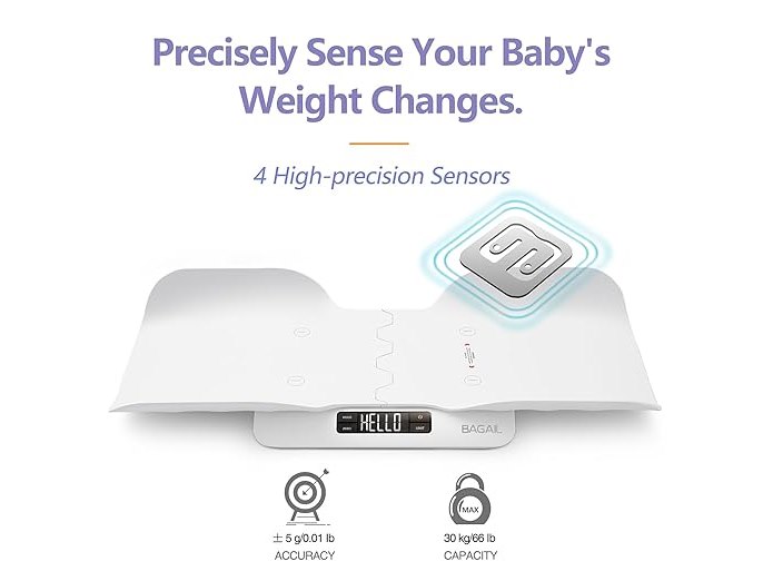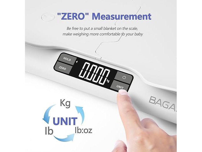 Ongebruikt, getest en werkend, volledig, ok, BAGAIL babyweegschaal met veilige en comfortabele lade, groot lcd-scherm, tare en hold functies, multifunctionele digitale weegschaal, peuter schaal of huisdier schaal, B0CKVWZ4R5