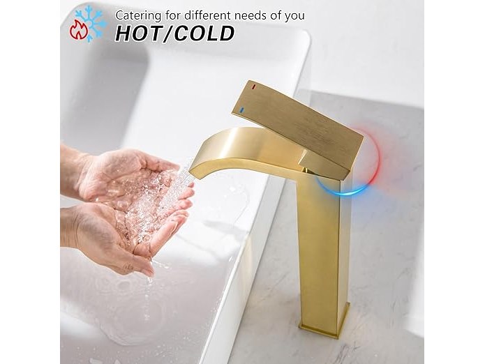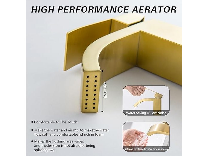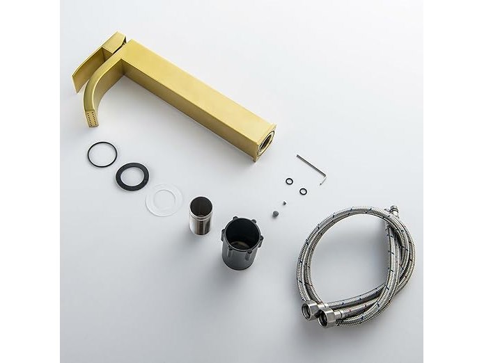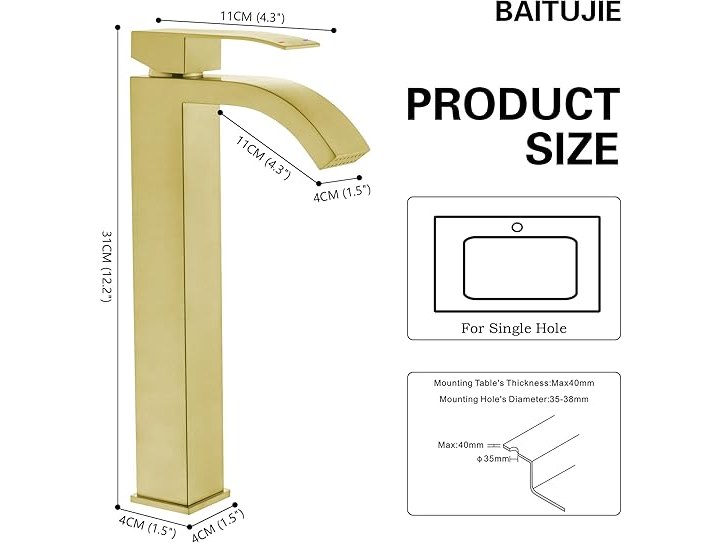 Ongebruikt, volledig, ok, BAITUJIE Hoge wastafelmengkraan, hoogbouw sanitaire kranen voor aanrechtblad, vierkante eengreepsmengkranen, geborsteld goud, B0F5W2Q2KP