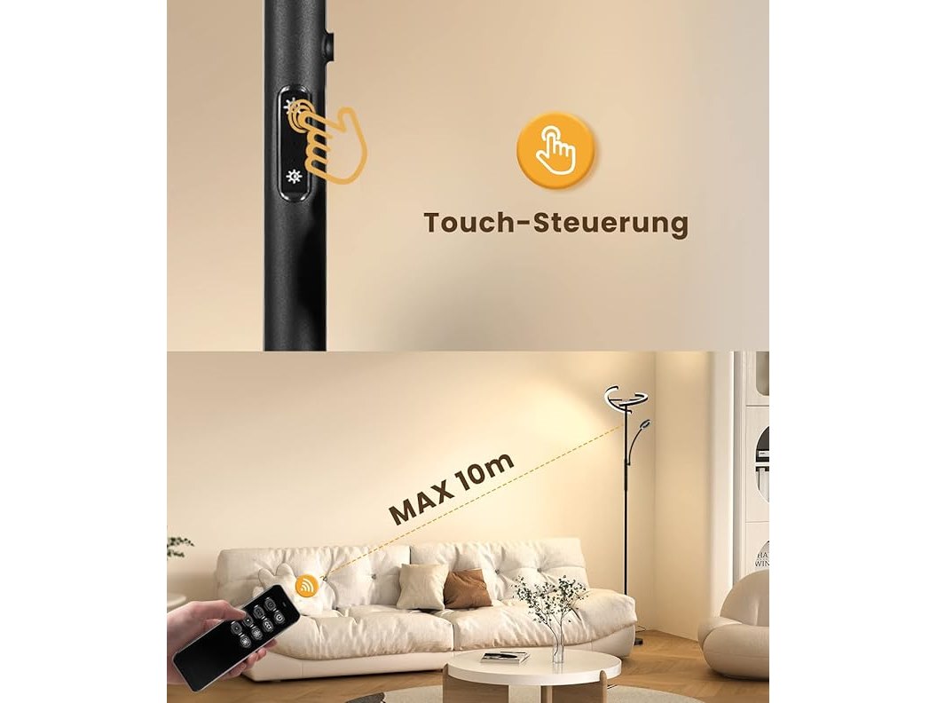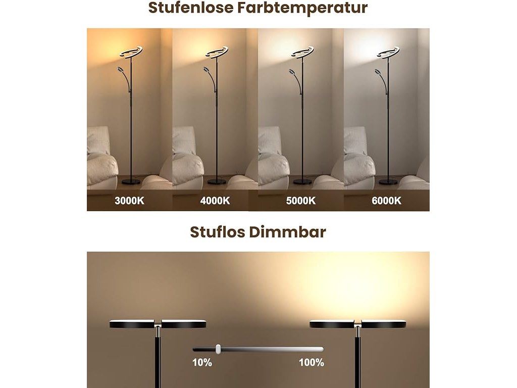 Ongebruikt, getest en werkend, ok, remote ontbreekt, ANTENLICHT KAKA|Staande lamp, LED, dimbaar, zwart, 20 W, met flexibele 7 W leeslamp, moderne uplighter met 4 kleurtemperaturen en afstandsbediening, voor woonkamer, slaapkamer, kantoor, B0D83M1TP2