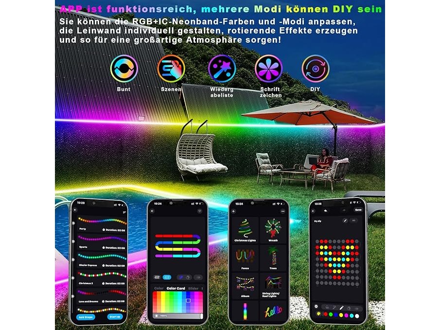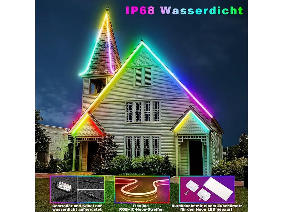 Ongebruikt, getest en werkend, volledig, ok, Lichaser 30 m RGB+IC outdoor flexibele neon ledstrip, IP68 voor buiten, bluetooth neon ledstrip, sync met muziek, 24 V waterdicht, voor buiten, voor feestjes, terrasverlichting (15 m x 2), B0F843PMYN