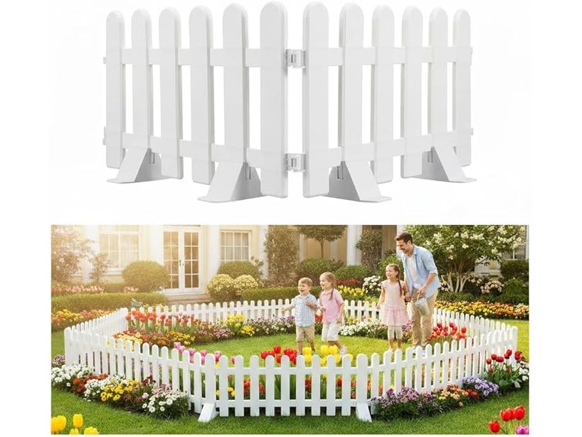 Ongebruikt, volledig, ok, originele verpakking ontbreekt, Supvox Tuinhekwerk (2-delig) met randen voor witte plastic tuinhekken, tuinpoorten met 4 voetstukken voor voortuin, boom, gazon en bloemperken, B0CX98CPC4