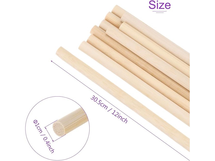 Ongeopend, in seal, DMiotech 50 stuks 12 mm x 450 mm houten deuvelstangen, onafgewerkte natuurlijke stokjes, hout ambachtelijke stokjes voor huisdecoratieprojecten en het maken van doe-het-zelf handwerk, houtkleur, B0D6RZLD99