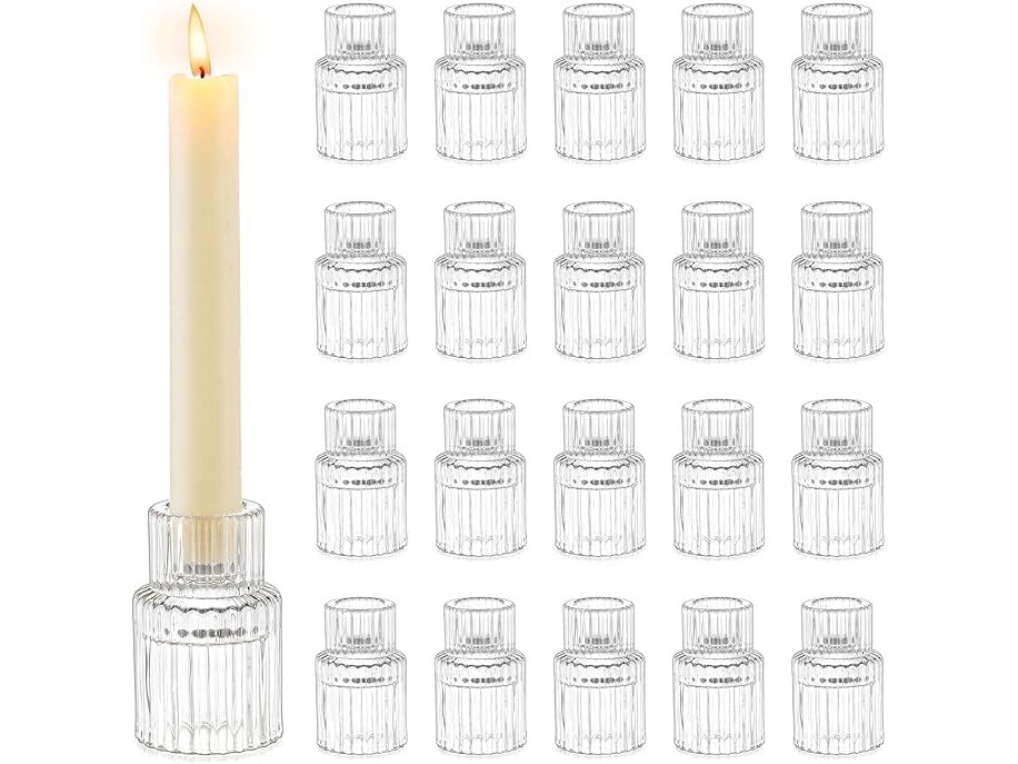 Ongebruikt, ok, niet in originele doos. Romadedi Glazen kandelaar, kaarsenstandaard voor staafkaarsen, set van 20, kleine staafkaarsenhouders, bruiloft, tafeldecoratie voor staafkaarsen, eettafel, feest, Kerstmis, advent, woonkamer, vintage, B0CHJNKNPQ