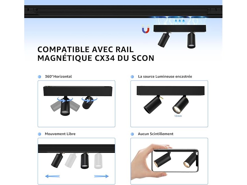Ongeopend, ok, SCON Led-spots, 2 × 5 W, 24 V, voor magneetrailverlichtingssysteem, zwarte dimbare of niet-dimbare lamp met ingebouwde CCT (3000 k/4000 k/5000 k/CRI 93/24°), B0CRKNCQ1V