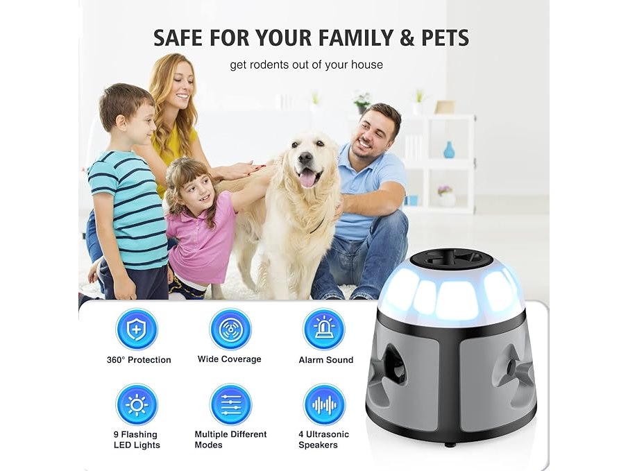 Ongebruikt, getest en werkend, volledig, ok, Tiptop home dierenverjager, Ultrasone muizenverjager, 360° muizenverjager, frequentie regelbaar, muizenafweer, steekbaar, ongedierteafweer, rattenafschrikking, voor binnen, rattenafschrikking, met led-stroboscooplicht, B0FR2BQJ69