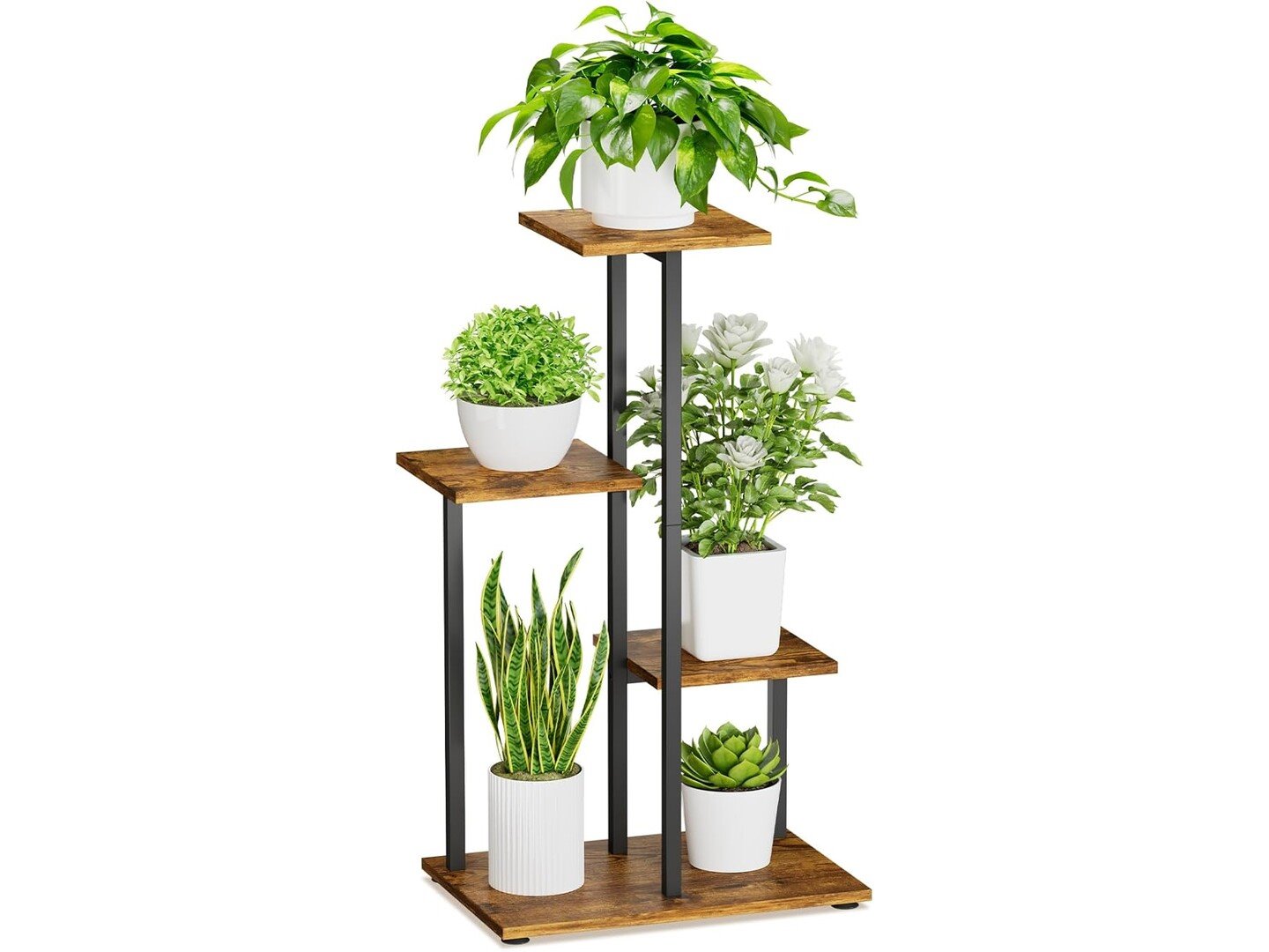 Ongeopend, in seal, iDavosic.ly Metalen plantenstandaard met 4 niveaus, plantenrek, bloemenrek, voor binnen en buiten, bloemenstandaard, voor tuin en balkon, zwart, B0D9V7WN7Q