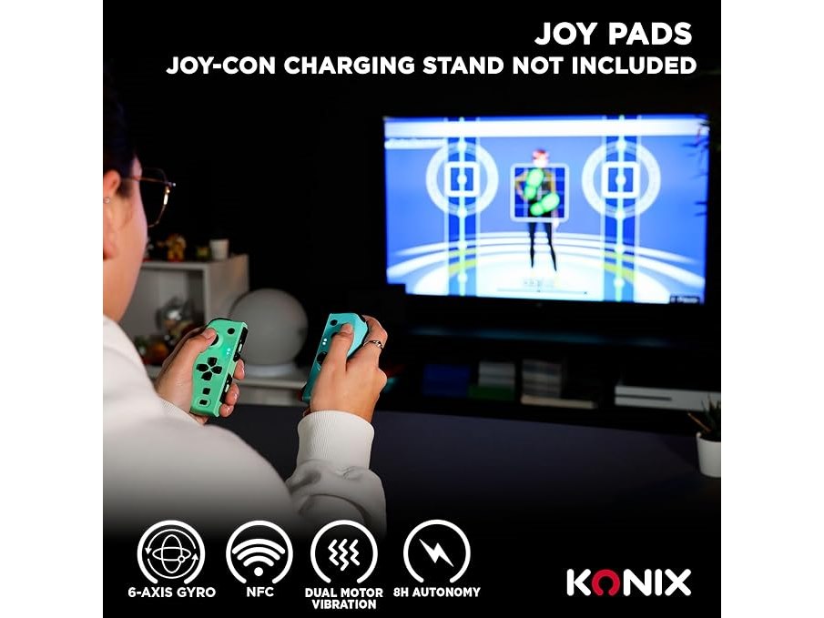 Ongebruikt, ok, werkt, Konix Joypads Controller-paar voor Nintendo Switch en Switch OLED - 8 uur batterijduur - trillingsfunctie - groen en blauw, B0DHSCVFMT