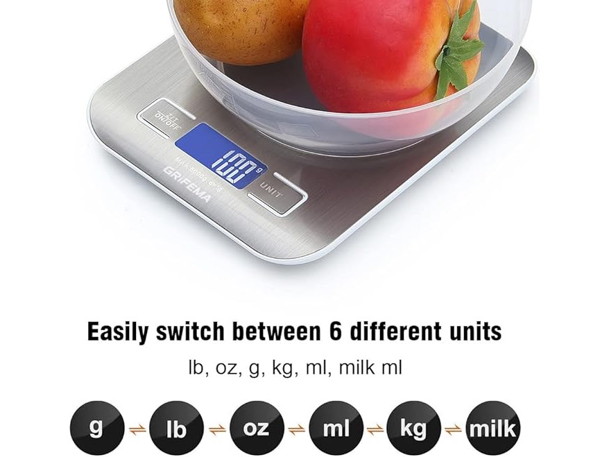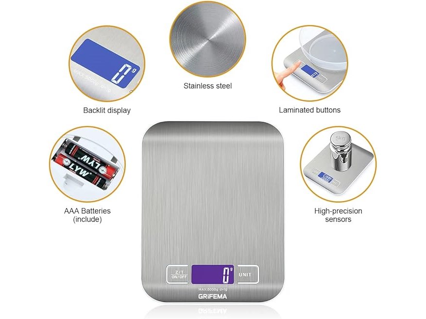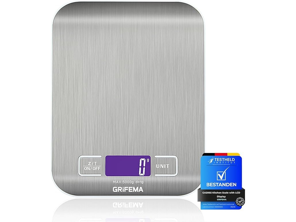 Ongebruikt, ok, werkt, compleet, GRIFEMA - GA2002, Keukenweegschaal met LCD-display, roestvrij staal, multifunctionele voedselweegschaal van 5 kg/11 pond, blauw, B08NDVTN5C