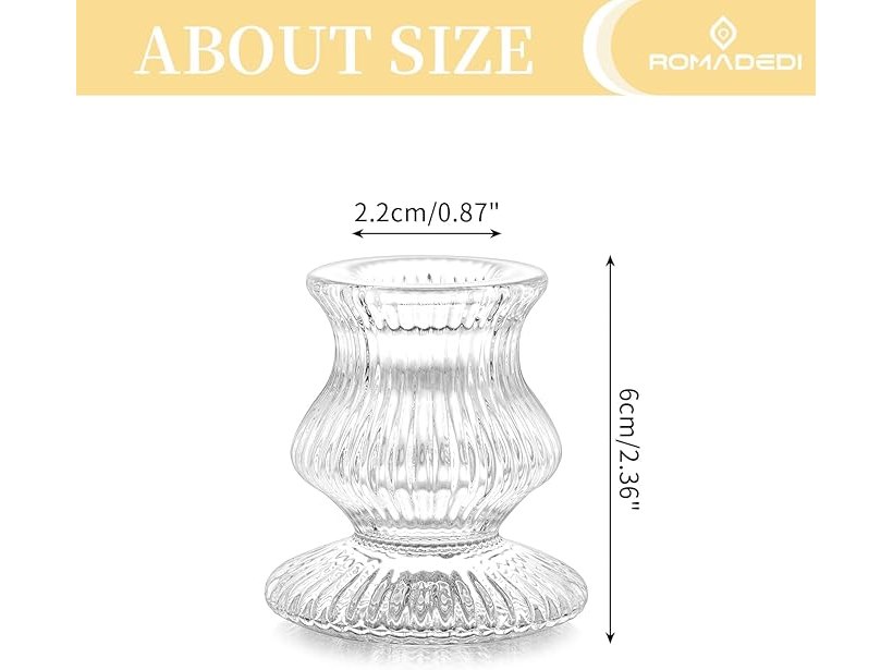 Ongebruikt, 1x te kort, Romadedi Glazen kandelaar voor kandelaar - Set van 20 doorzichtige kleine taper stokjes bulk voor tafel diner woonkamer kerstdecoratie bruiloft feest middelpunt advent modern, B0CZ8PSM1S