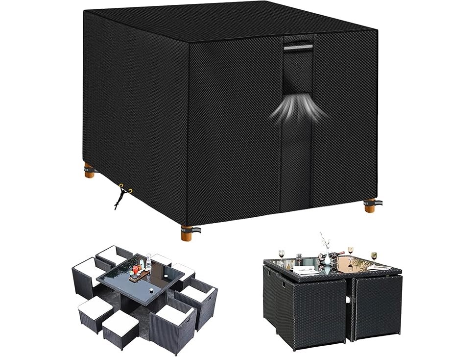 Ongeopend, RICHIE Waterdichte tuinmeubelhoezen voor de tuin, tafelhoes voor buiten 125x125x71cm, zware, ademende 600D Oxford PVC-coating voor tuinmeubelen, terrastafelhoes, DHGFC125-BK Zwart, B0CRDX8N68