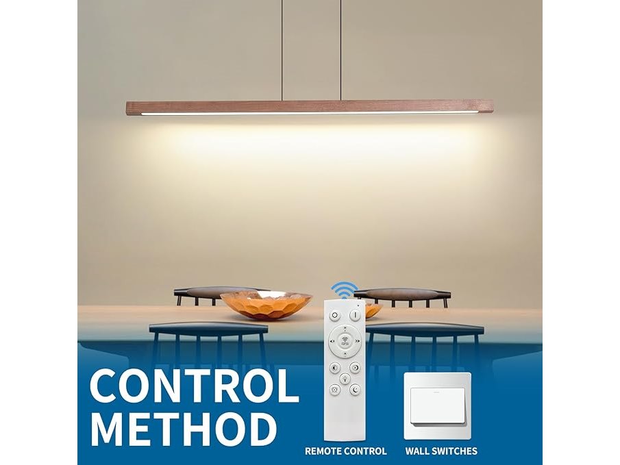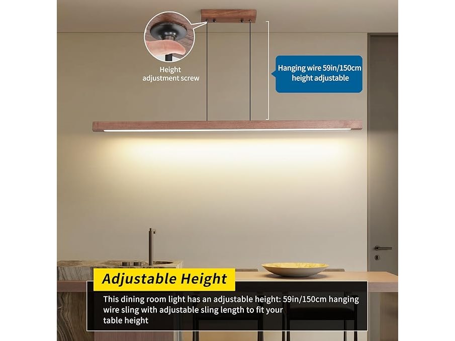 Ongebruikt, getest en werkend, volledig, ok, Mikeru Walnoot Hanglamp Eetkamerverlichting 150 cm Hanglamp Dimbaar met Geheugenfunctie 10% tot 100% Houten Hanglamp 3000 K / 4500 K / 6500 K met Afstandsbediening, voor Woonkamer, B0DK8ZF3CM