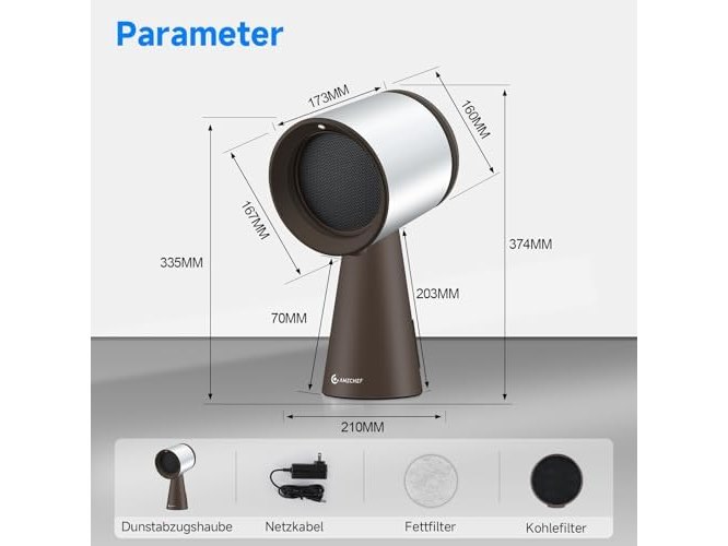 Ongebruikt, getest en werkend, ok, AMZCHEF Ah003-SG-V3 Afzuigkap, draagbare afzuigkap met ledlicht, B0FFXZMP5P