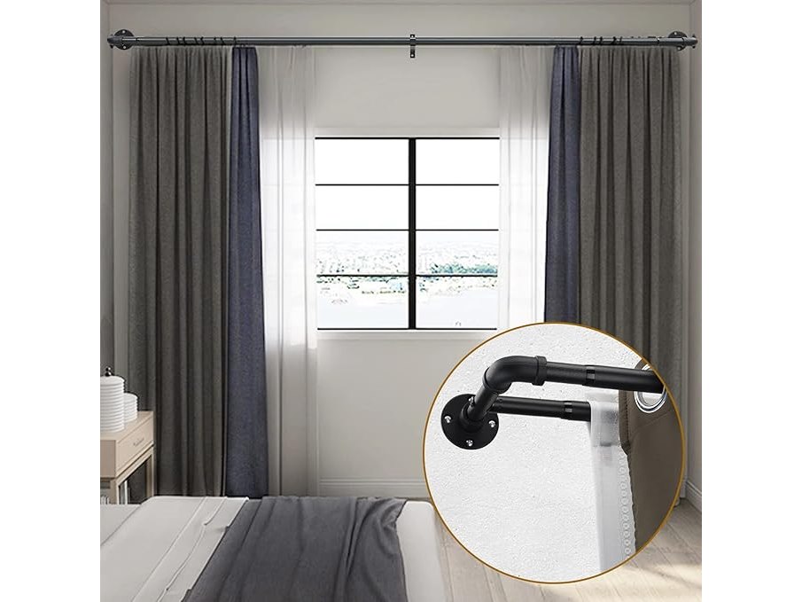 Ongeopend, INFLATION Industriële dubbele gordijnstangen, matzwarte gordijnroedes voor ramen, 74-269 cm, 2,5 cm dubbele gordijnroedes voor ramen, verstelbare gordijnstangset , B0BJTHF163