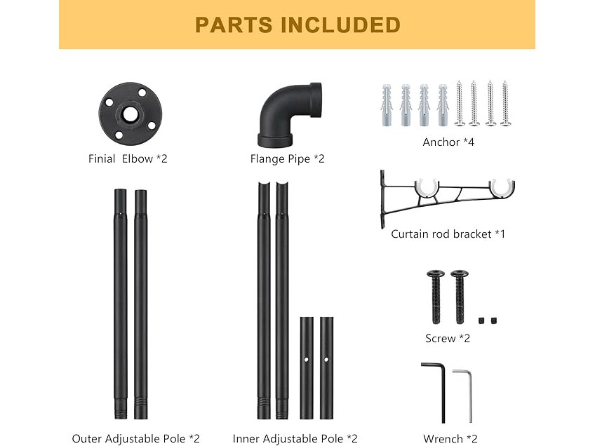 Ongeopend, INFLATION Industriële dubbele gordijnstangen, matzwarte gordijnroedes voor ramen, 74-269 cm, 2,5 cm dubbele gordijnroedes voor ramen, verstelbare gordijnstangset , B0BJTHF163