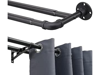 Ongeopend, INFLATION Industriële dubbele gordijnstangen, matzwarte gordijnroedes voor ramen, 74-269 cm, 2,5 cm dubbele gordijnroedes voor ramen, verstelbare gordijnstangset , B0BJTHF163