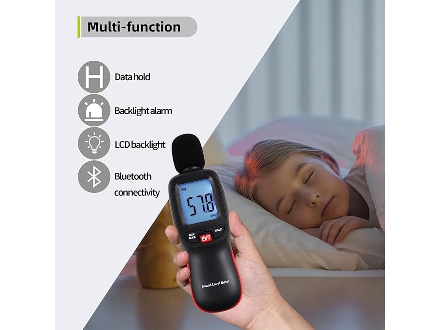 Ongeopend, ok, Yiko Geluidsniveaumeter, digitale volumetoestel, draagbaar, 35 dB tot 130 dB met lcd-display met achtergrondverlichting, apparaatmeter, max/min gegevensopslag, B0DL544JFF