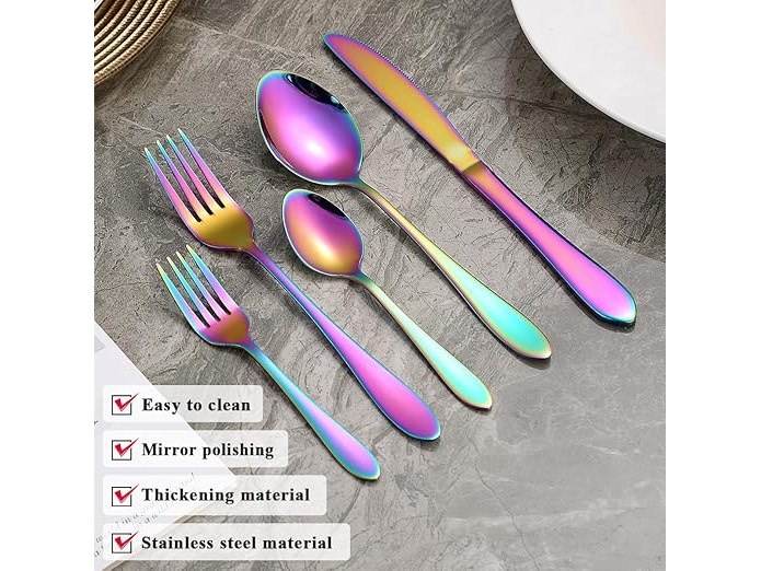 Ongeopend, in seal, ReaNea Bestekset (30-delig) voor 6 personen, regenboogbestek, titanium bestek, incl. messen, lepels, vorken, theelepels, slavorken, vaatwasserbestendig, B0D2ZCSN4G