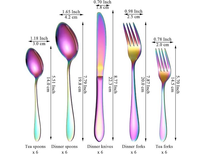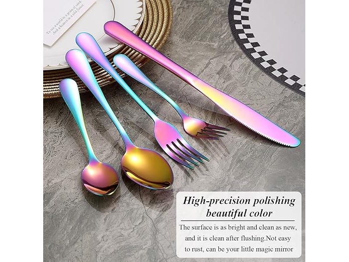 Ongeopend, in seal, ReaNea Bestekset (30-delig) voor 6 personen, regenboogbestek, titanium bestek, incl. messen, lepels, vorken, theelepels, slavorken, vaatwasserbestendig, B0D2ZCSN4G