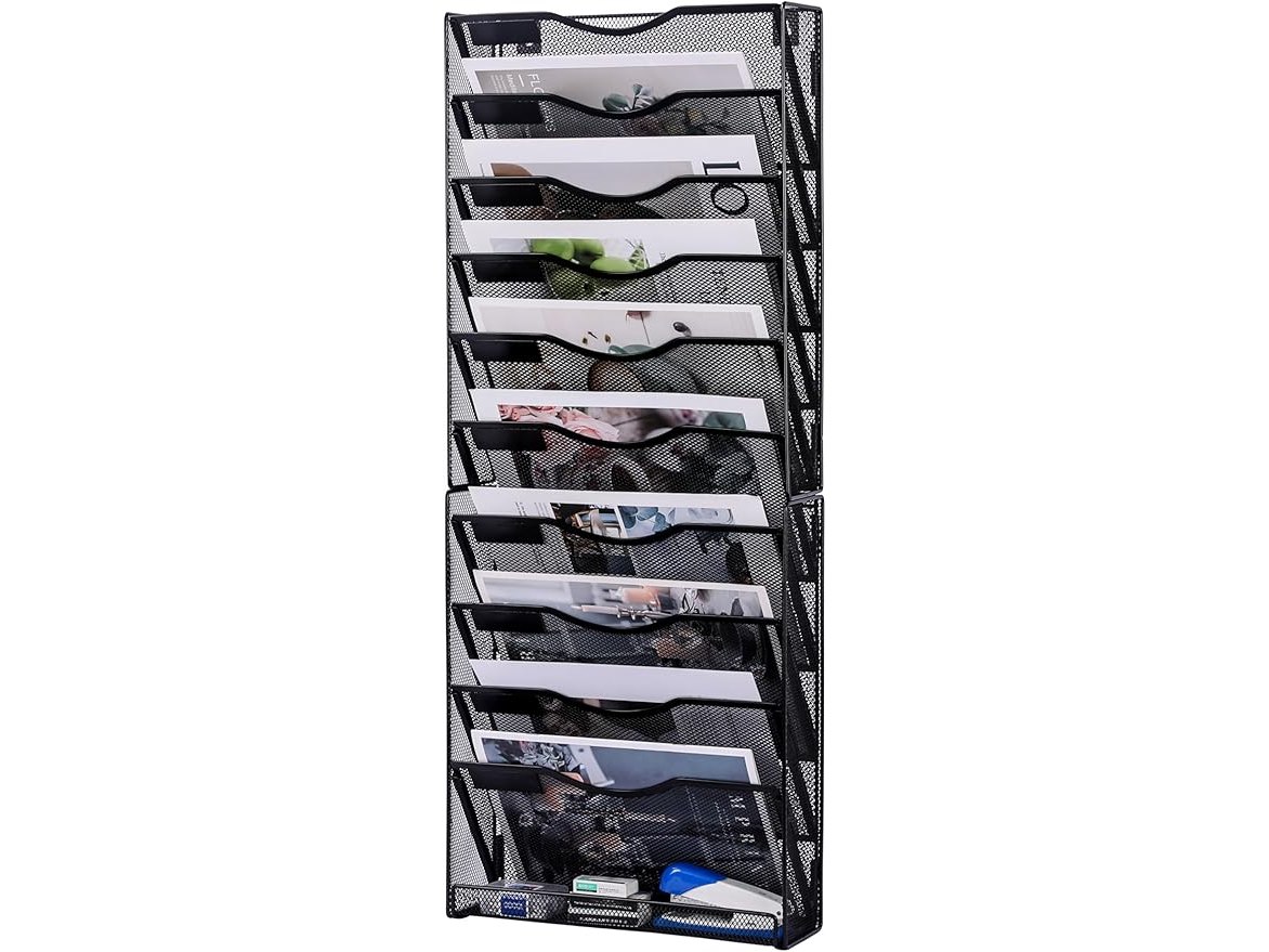Ongeopend, in seal, Solinxe Wandhouder 10 Tier Bureau Tidy Organizer in Lade Papier Document Tijdschrift Opbergrek voor Kantoor Thuis School Accessoires Benodigdheden, Zwart, B0CWTPRT2D