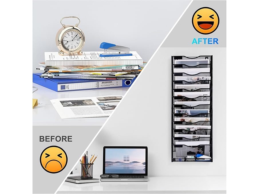 Ongeopend, Hangende documentenhouder 14 lagen , zzwart metaal, papieropslag organizer, wandmontage tijdschriftenrek (zwart, 14 lagen) B0D7HJ6693