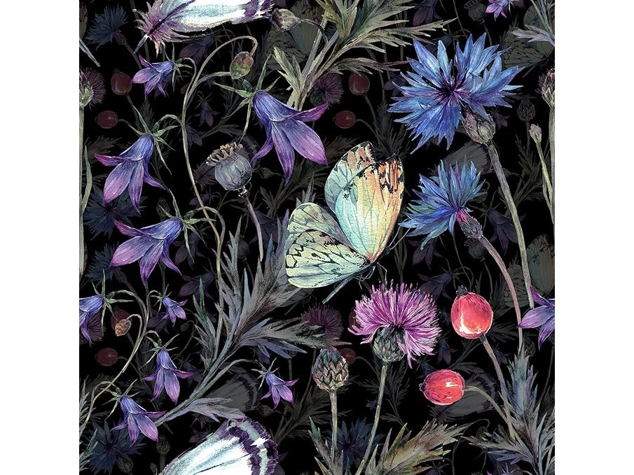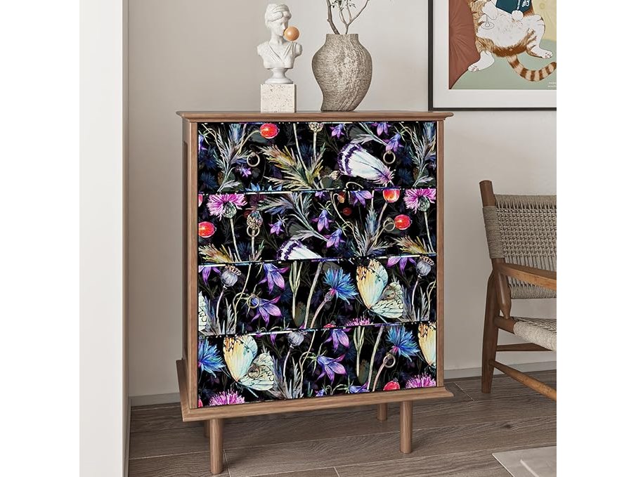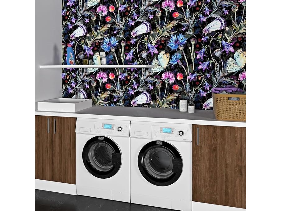 Ongeopend, 4 rollen, ReWallpaper 44,5 cm x 7 m Zelfklevend behang met bloemen, vintage patroon, paars vlinderpatroon, zelfklevend plastic patroon voor meubels, hal, verwijderbaar PVC-behang, B0BW3LMC43