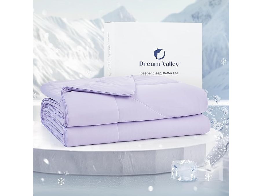 Ongeopend, licht beschadigde verpakking, Dream Valley® Outlast® NASA-klasse koeldeken, Q-Max-technologie > 0,4, zacht, zelfkoelend, Aerocool™, voor mensen die het snel warm hebben, nachtelijk zweten, lavendel, 228 x 228 cm, B0DCB65RH4