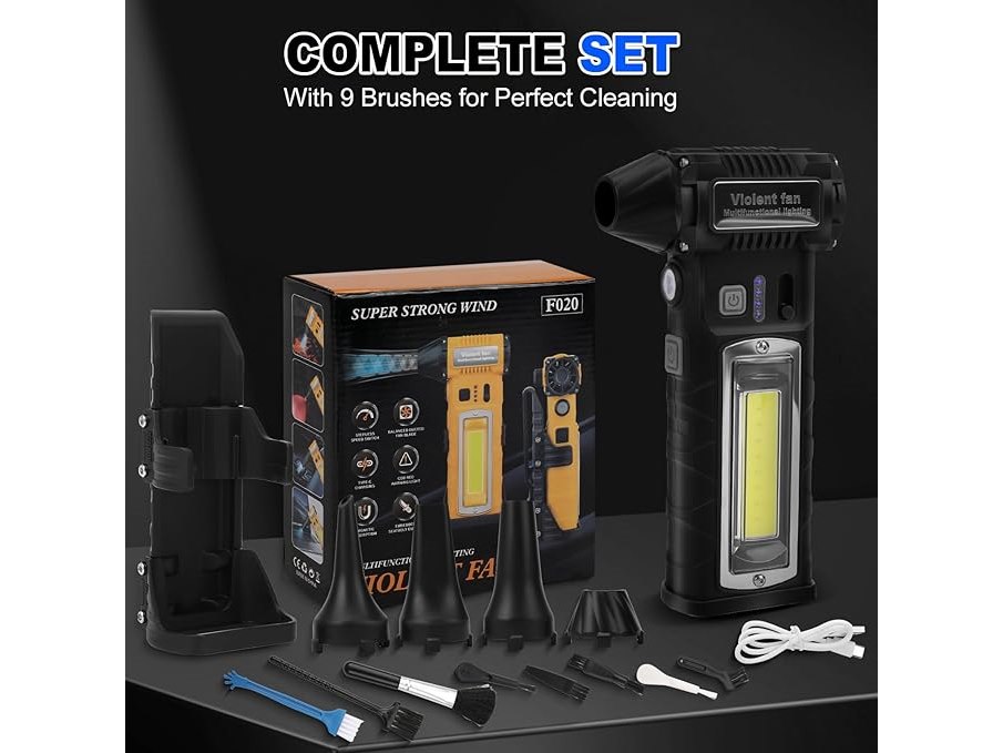 Ongeopend, ok, Heberuck 2-in-1 accublazer en pc-stofzuiger, 110.000 omw/min, 8000 mAh, compressored Air Duster met reinigingsset, ledlicht voor pc, auto, bank, B0F21H59FH