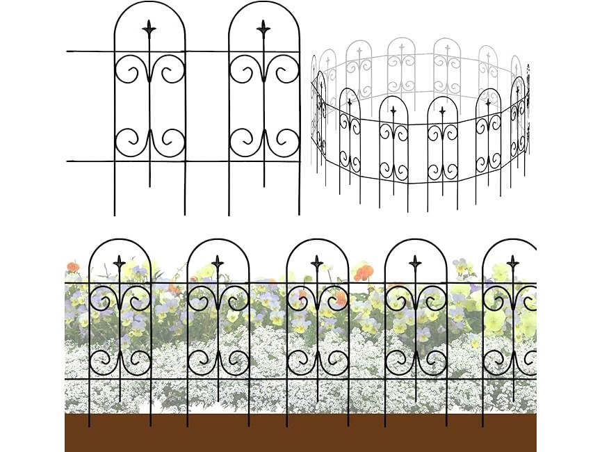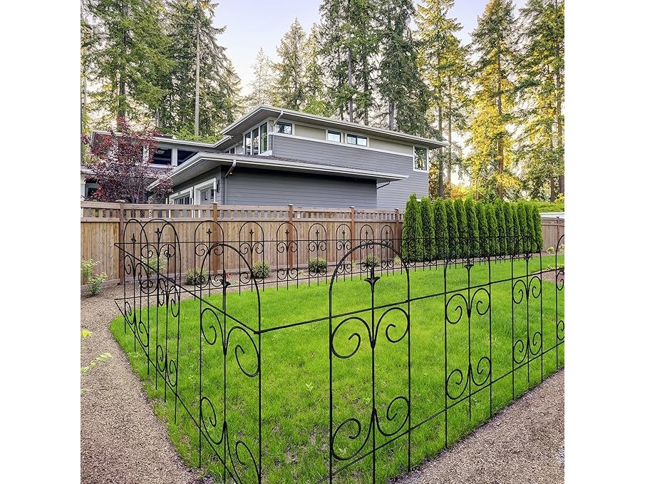Ongebruikt, ok, compleet, Thealyn Metalen Decoratieve Tuinhekrand 82 cm hoog x 6,1 m breed. Roestvrijstalen smeedijzeren hekpanelen voor bloembedden, bomen en als dierenafscheiding, B0BRQ5MBFK